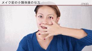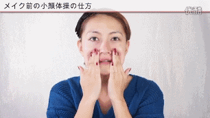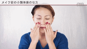 ▲ Step 4:用手指从腮帮下画个圈到鼻头下方,停顿一下。虽然表情很滑稽,但是对法令纹去除事半功倍。