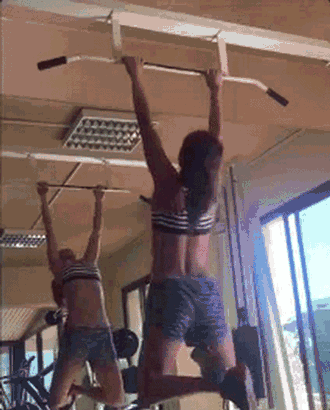 在健身房运动是她的日常,各种高难度动作说来就来,手臂肌肉充满力量。