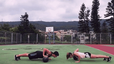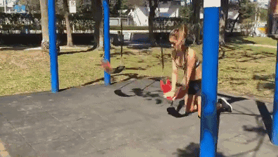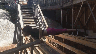 不管在哪里,公园、楼梯、家里都是她的健身房,栏杆上来一个标准的的俯卧撑。