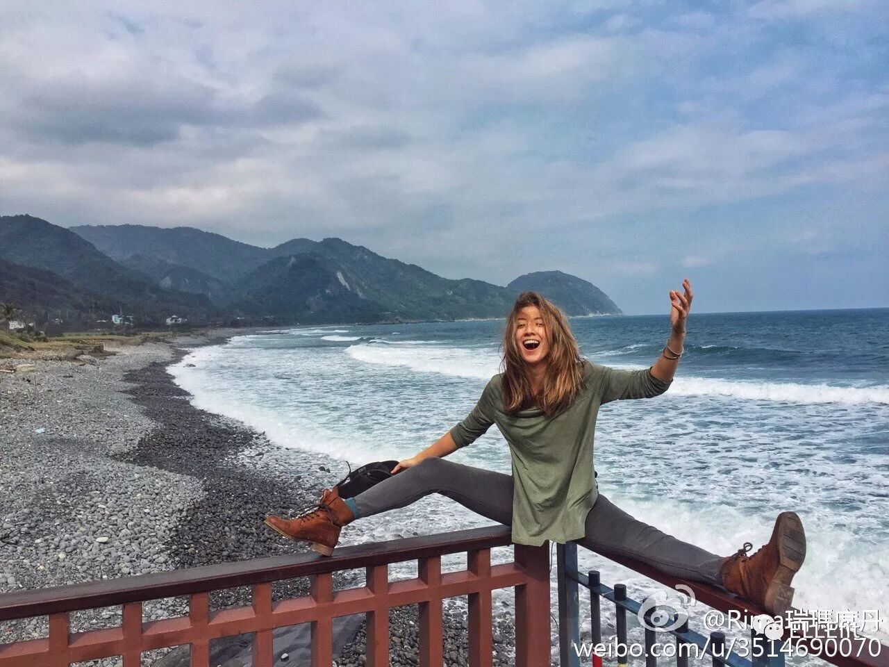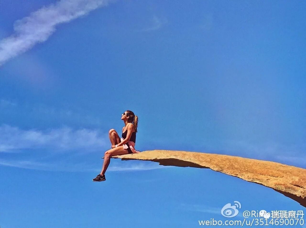 别人“山顶游客照”都是剪刀手,Rima的“游客照”一般人绝对不敢尝试。