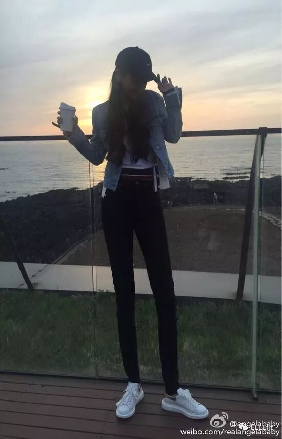 除了这些“腿精”以外,还有一些腿长不够P图来凑的选手们,Angelababy、杨紫和袁姗姗都拉过这种直接戳穿屏幕的10米长腿。