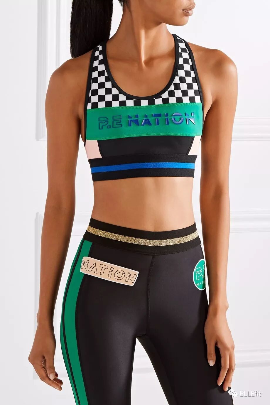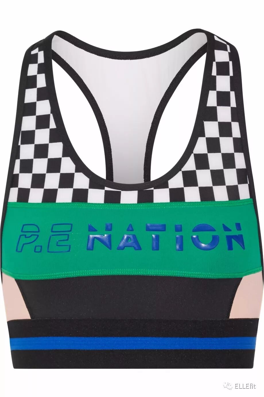 P.E NATION的风格一向充满活力和色彩,这款撞色+棋盘纹设计的运动Bra也能让你瞬间成为健身房的焦点。单品采用吸湿排汗的弹性面料,宽肩带和下围以及超贴身的设计大大提高了支撑度,任何强度的运动都能应对自如。