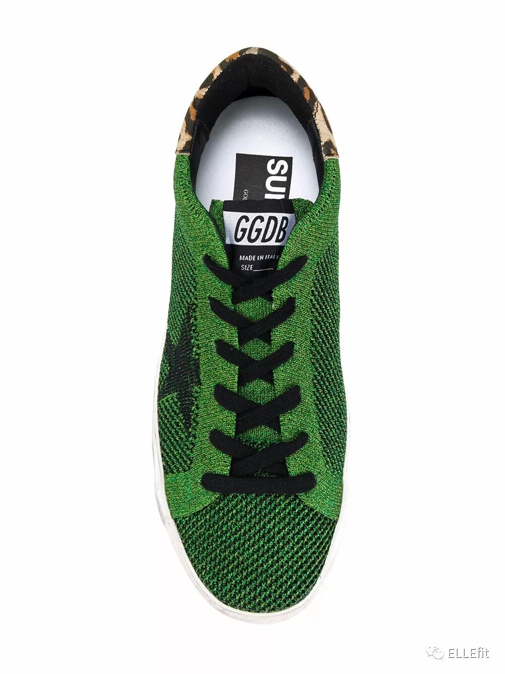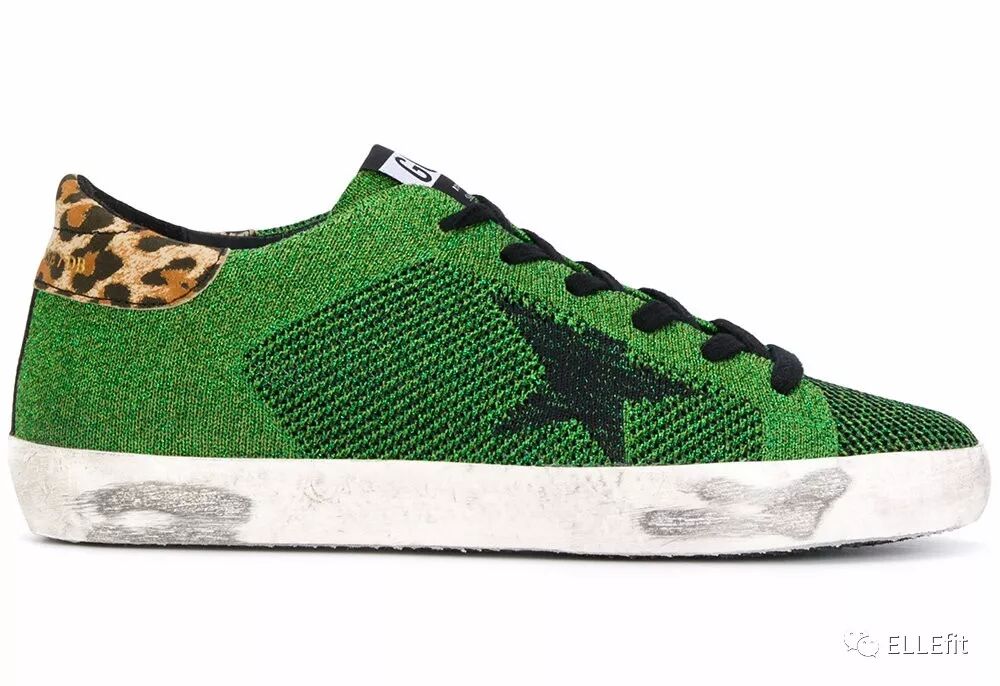 以小脏鞋出名的GOLDEN GOOSE也没有放过今年编织的潮流,把草木绿和编织两种元素放在一起,还加入了狂野的豹纹元素。鞋底依旧是经典的仿旧做脏效果,虽然不适合健身,但走运动风的街拍完全没问题。
