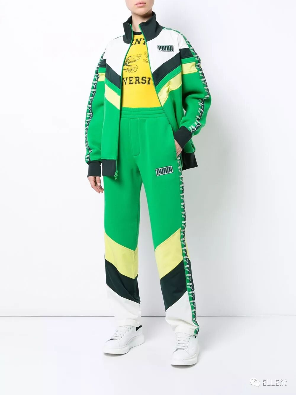 天马行空的Fenty×Puma又出了一款绝对抢戏的运动夹克,中学校服般的复古设计,亮眼的霓虹绿和荧光绿十分抢镜,复制粘贴的logo,出位又独特。这款夹克适合路跑或去健身房的路上保暖,但对时髦精来说也可以用来凹造型。