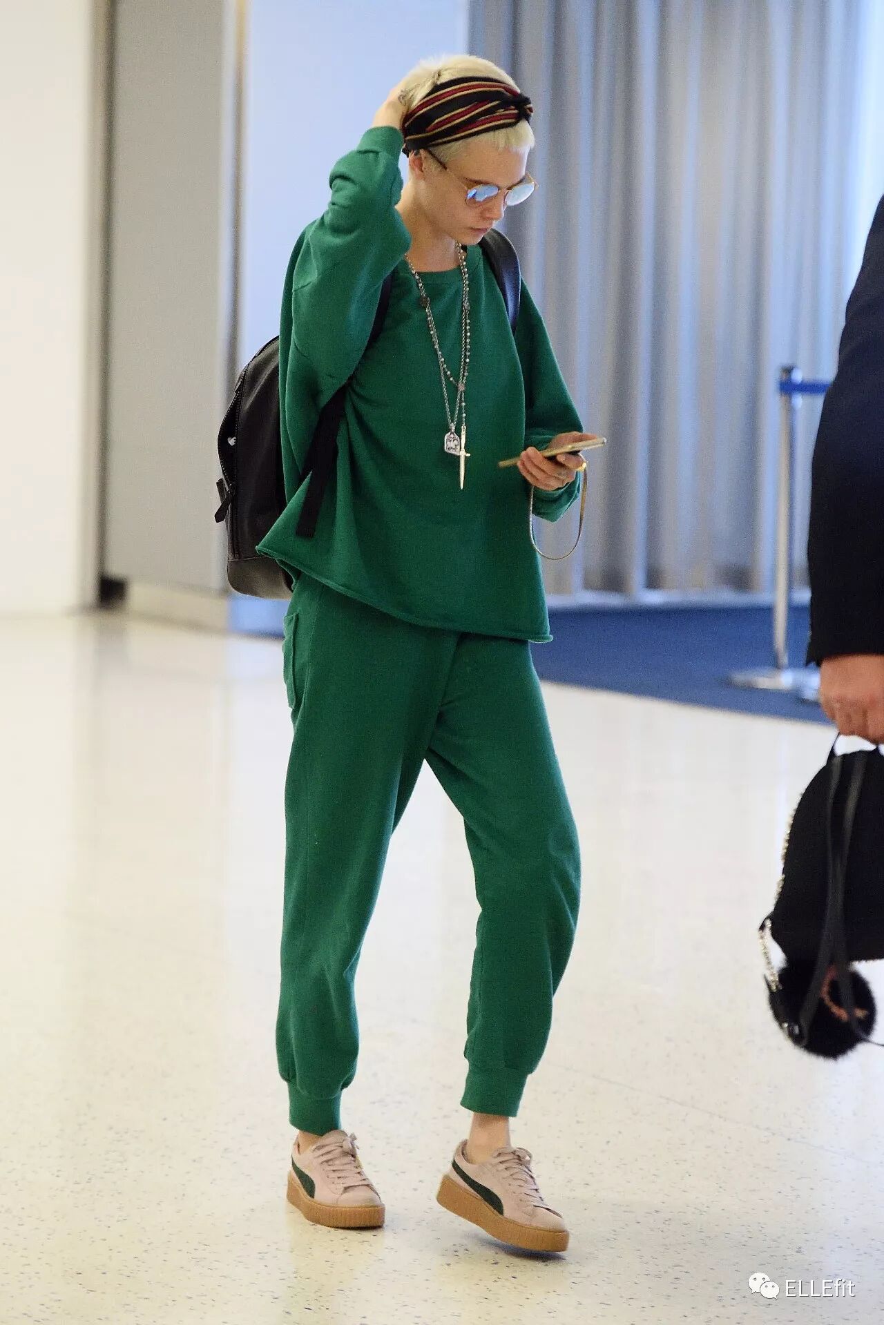 ▼随性的卡抽就是真·运动Girl了,棉质运动风搭配厚底板鞋,打造出了一个不羁的街头少年形象。