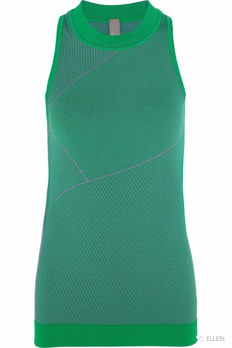 这款翡翠绿和紫色罗纹针织背心非常独特,是专门为瑜伽、舞蹈等运动设计的。虽然是针织面料,但非常透气,排汗和速干功能都很好,而且能保证身体灵活运动不受限制。除了运动之外,日常生活中也完全可以走时髦运动的街头风。