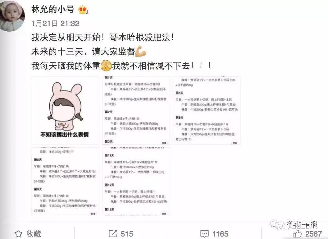 唔……原来林允开始尝试各奔哈根减肥了……老编只想说,新的一年希望林允不靠P图,找到减肥的正确打开方式,就像你微博说的“管住嘴迈开腿”……