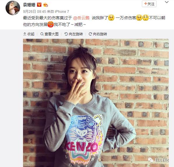 ▲ 同一天,袁姗姗就发微博吐槽自己,最近被人家说,胖了不少……然后不得不开启减肥模式,不吃……不过,这同一件衣服,为什么媒体路透和自己发的差距这么大呀?