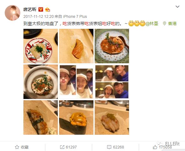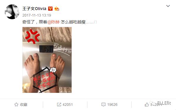 可是就算这么能吃,她2017年微博里也没有一条与运动、节食、健身相关的,而且每次被拍到还是那么瘦,难道继承了男友的模特体质?