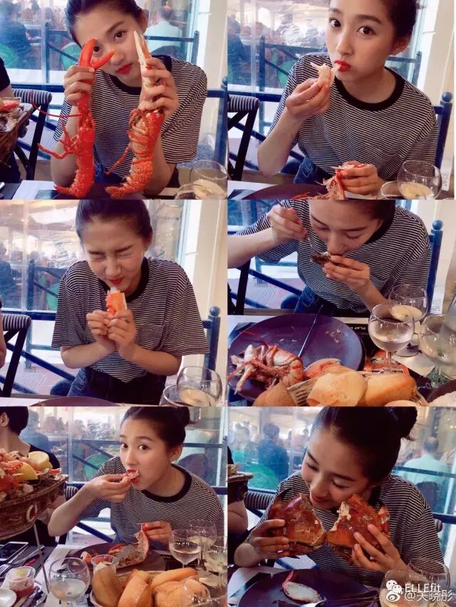 在别的女明星吐巧克力的时候,关晓彤执着于美食不可自拔。