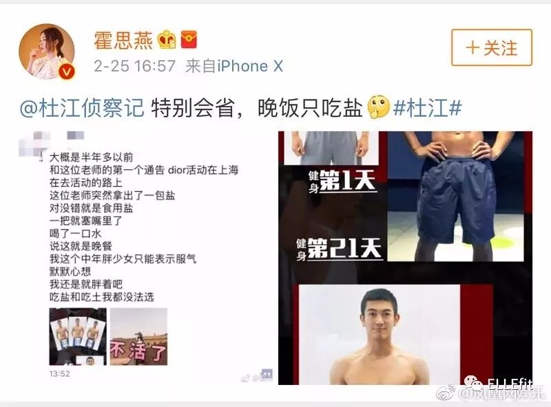 这种减肥食谱除了江疏影,还有依靠他成功把体脂降到7%的杜江。