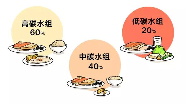 中碳水组:40%碳水、40%脂肪、20%蛋白质