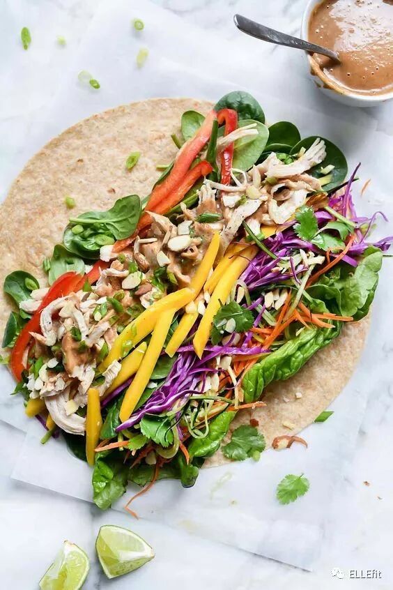 中餐:鸡胸肉色拉配油醋汁or全麦瘦肉蔬菜卷配1茶匙黄油+1份水果